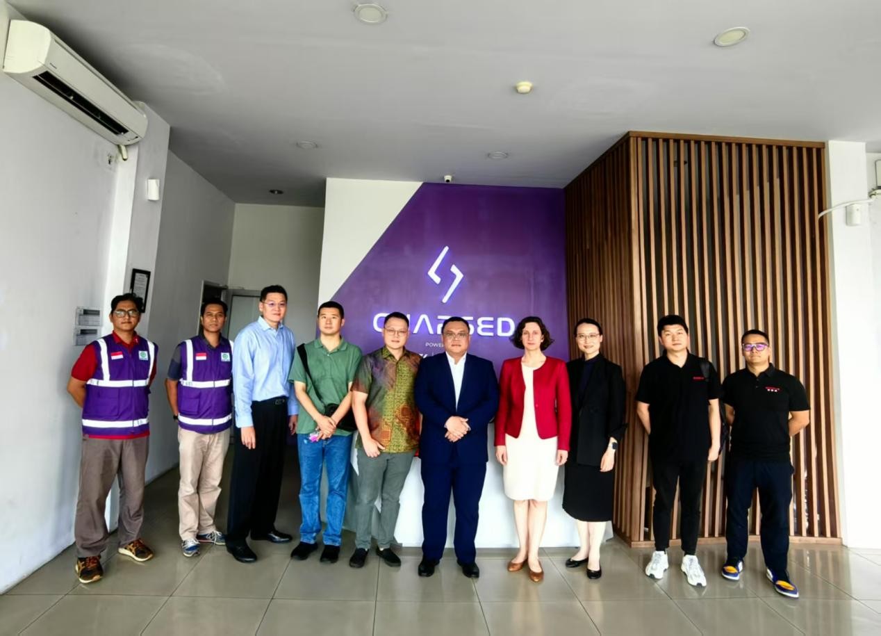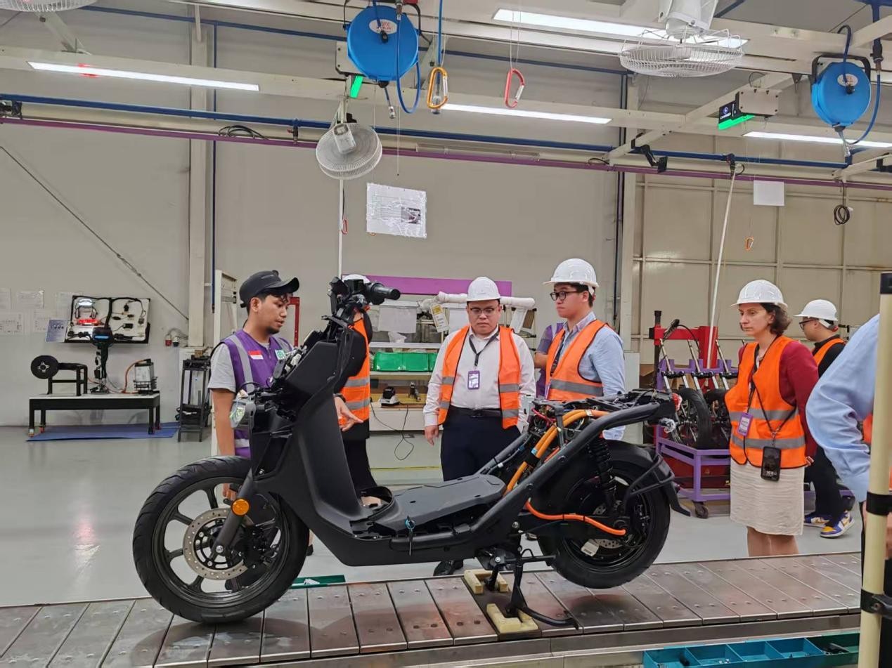 代表團實地參觀了Charged電動助力車生產基地,公司CFO Devid Pramono、供應鏈負責人Fadilah Rosandi等介紹了其以訂閱服務為主的業務模式、技術路線及市場表現。雙方就鉛酸電池與鋰電池的技術應用及本地化生產等話題進行了深入探討。