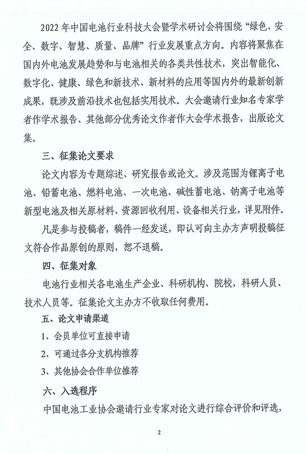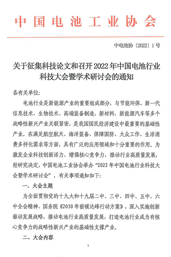 關于召開2022年中國電池行業科技大會和征集大會論文的通知.pdf