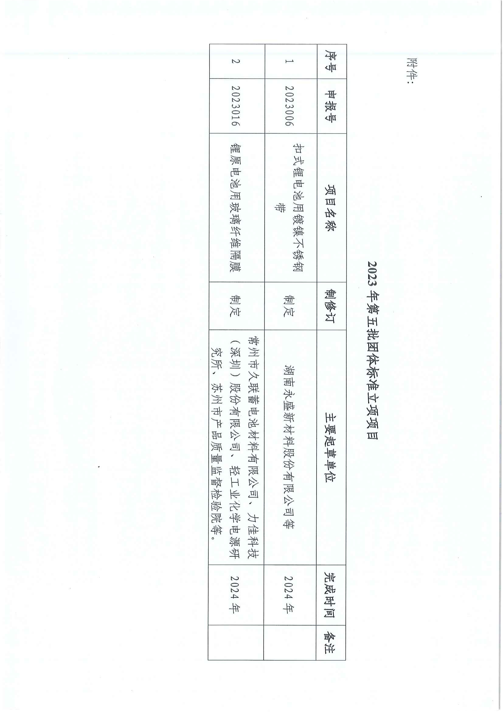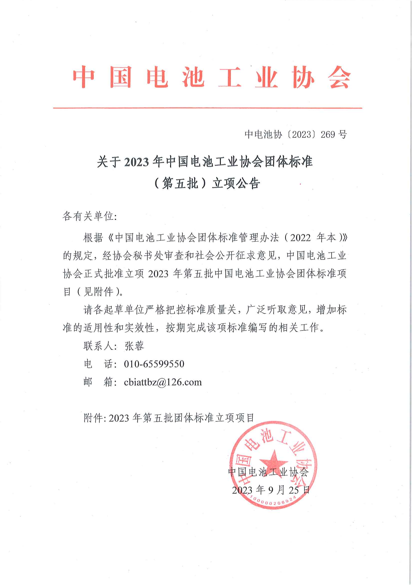 關(guān)于2023年中國電池工業(yè)協(xié)會(huì)團(tuán)體標(biāo)準(zhǔn)(第五批)立項(xiàng)公告