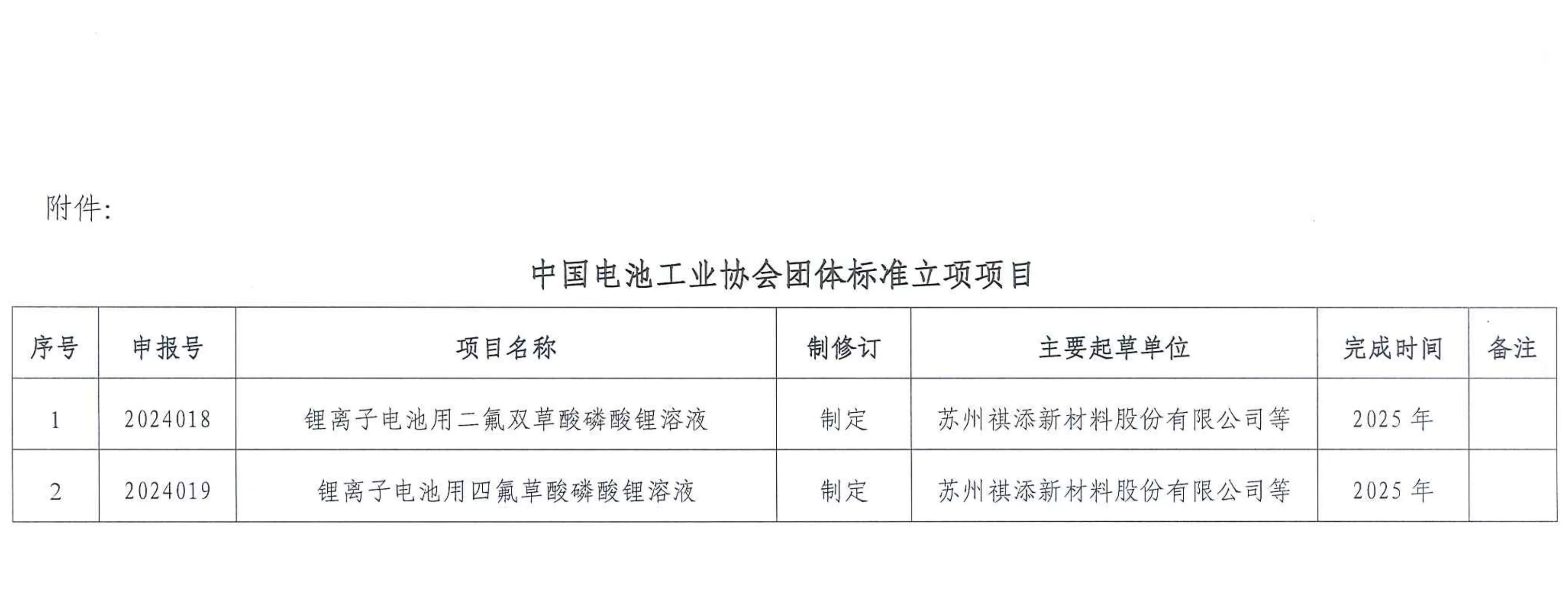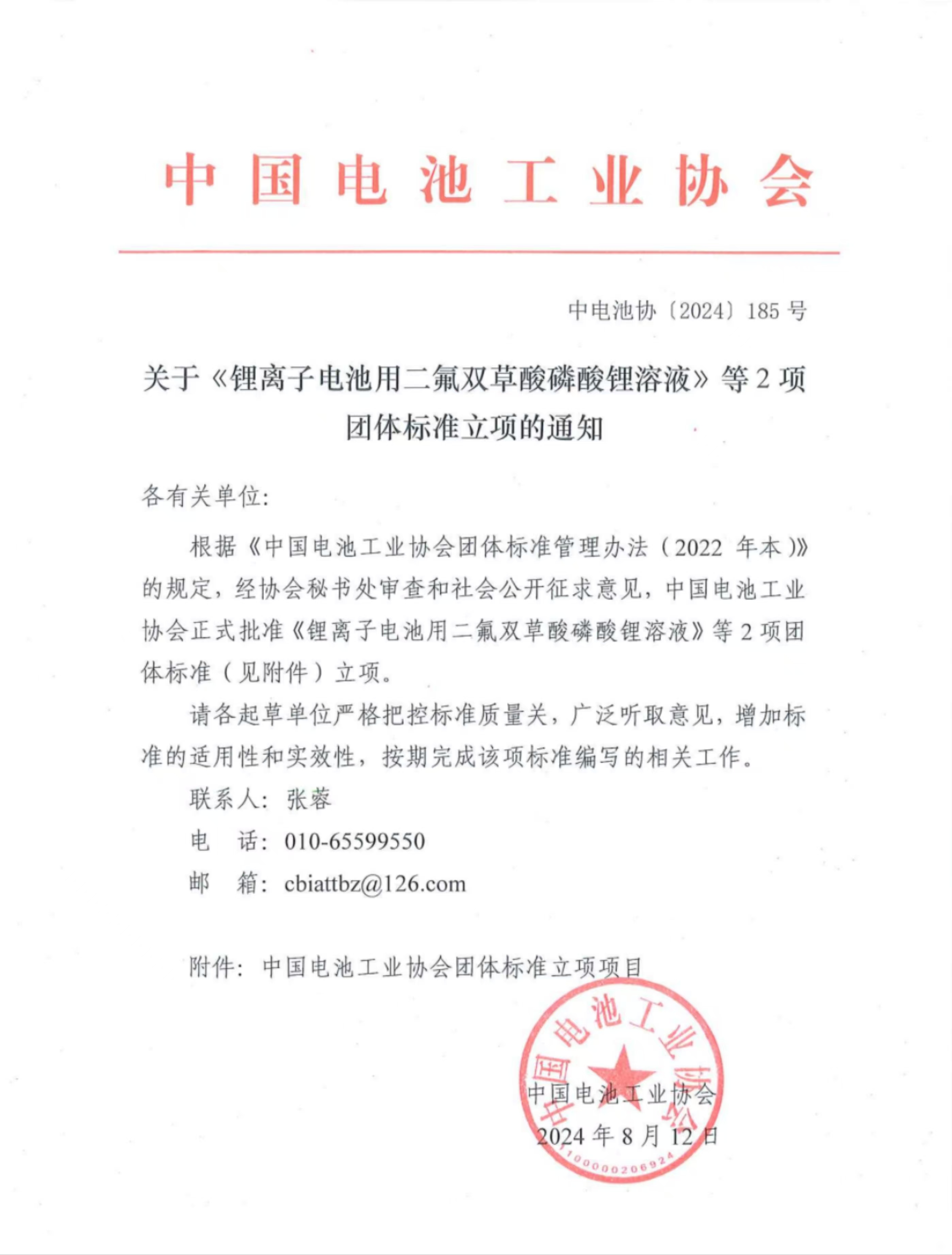 關于《鋰離子電池用二氟雙草酸磷酸鋰溶液》等2項團體標準立項的通知