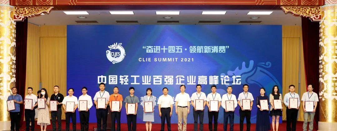2021年7月20日,由中國輕工業聯合會主辦的“奮進十四五 領航新消費”輕工業百強企業高峰論壇在北京隆重召開。中國輕工業聯合會黨委書記、會長張崇和出席會議并做主旨講話;工業和信息化部總經濟師許科敏、國家發改委產業司一級巡視員夏農出席并致辭;工信部消費品司二級巡視員張軍等領導嘉賓出席大會。商務部外貿司、農業農村部鄉村產業發展司相關處室負責同志,中國輕工聯各部室負責人,輕工行業協會代表,獲獎企業代表等300多人參加大會。