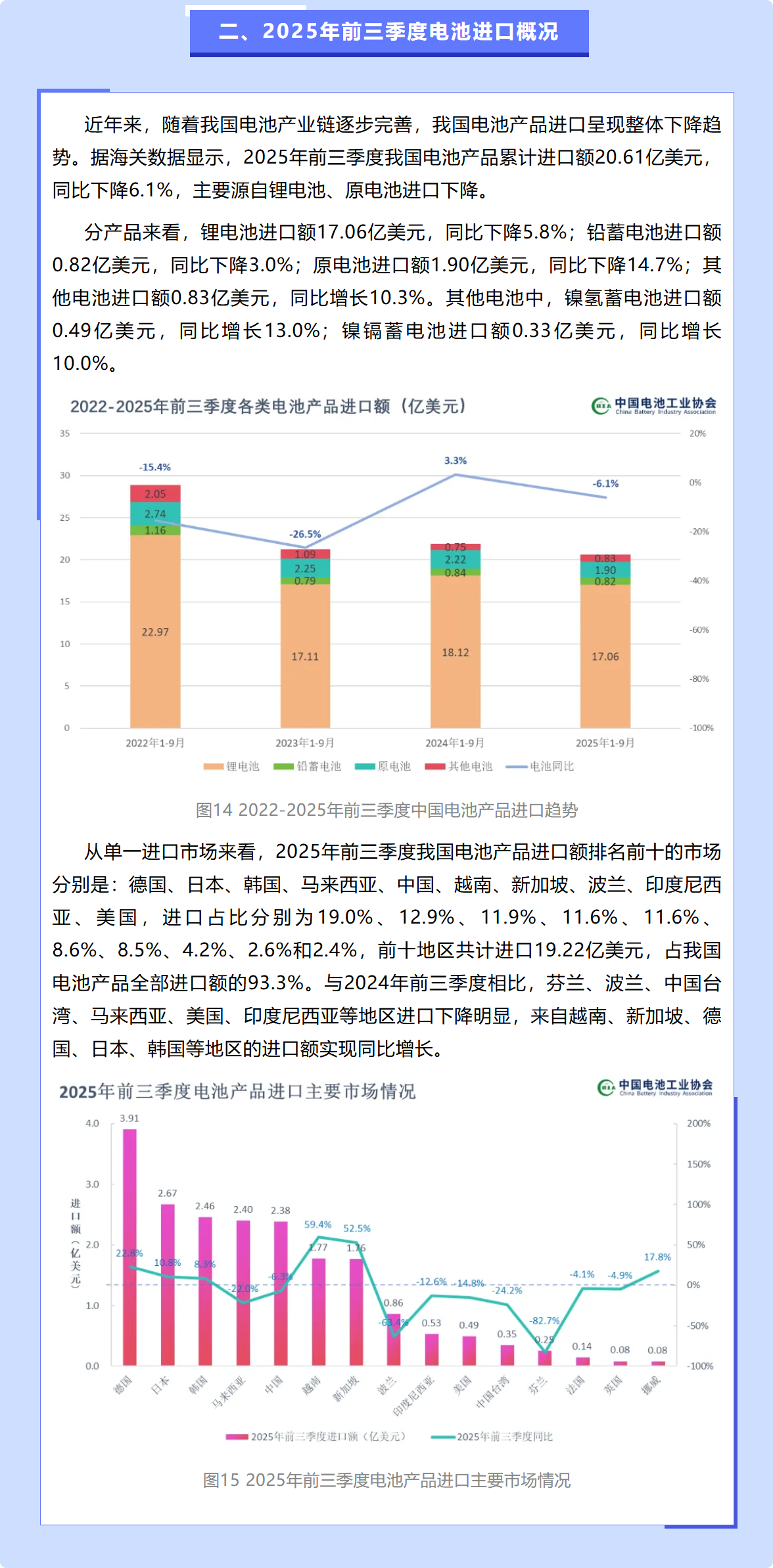 數(shù)據發(fā)布 | 2025年前三季度電池行業(yè)進出口簡報