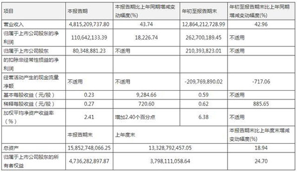 前三季度,公司實現(xiàn)營業(yè)收入128.64億元,已超越去年全年營收;實現(xiàn)歸母凈利潤2.63億元,同比扭虧為盈。其中,第三季度公司實現(xiàn)營業(yè)收入48.15億元,同比增長43.74%;歸母凈利潤1.11億元,同比大增18226.74%。