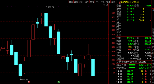 1月19日早盤,永興材料低開低走,截至發稿已封死跌停,報112.95元,成交金額13億元。