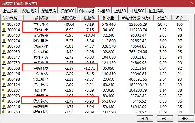 2月8日,鋰電池板塊再度大跌,星源材質一度大跌13%,寧德時代大跌近9%,億緯鋰能大跌7%,其中由于寧德時代等是創業板的權重股,還直接把創業板都帶崩了。
