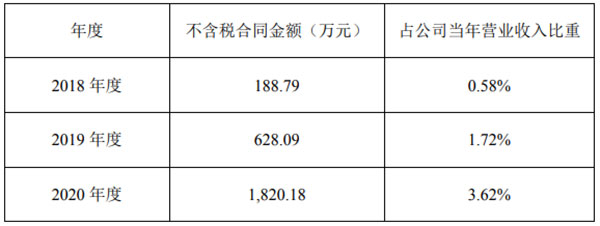 根據公告,先惠技術與寧德時代及其控股子公司最近三個會計年度的交易往來情況:2018年度不含稅合同金額188.79萬元,占公司當年營業收入比重0.58%;2019年度不含稅合同金額628.09萬元,占公司當年營業收入比重1.72%;2020年度不含稅合同金額1,820.18萬元,占公司當年營業收入比重3.62%。
