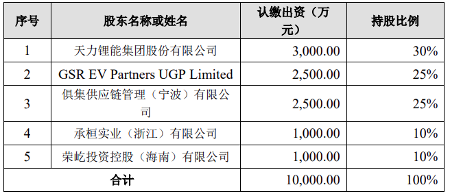 值得注意的是,新成立公司的股東之一俱集供應(yīng)鏈管理(寧波)有限公司,是天力鋰能控股股東王瑞慶、李雯間接控股企業(yè),天力鋰能持有其40%股權(quán),且天力鋰能董事長之子王宇騰擔(dān)任俱集供應(yīng)鏈公司的董事。