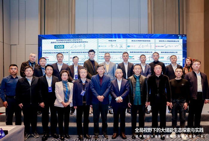 當(dāng)天,由先進(jìn)儲(chǔ)能材料國(guó)家工程研究中心牽頭,中創(chuàng)新航、格林美、科力遠(yuǎn)、昆侖集團(tuán)、海控能源、當(dāng)升科技、上能電氣、綠能慧充、寧德惠智、果下科技、端瑞科技、成都易態(tài)等行業(yè)優(yōu)秀企業(yè);武漢大學(xué)、中南大學(xué)、國(guó)家輕工業(yè)電池及儲(chǔ)能材料質(zhì)量監(jiān)督檢測(cè)中心等知名高校與科研院所;交銀金租、國(guó)電投融和元儲(chǔ)、深投控東海投資、深圳人才集團(tuán)等金融與人才服務(wù)機(jī)構(gòu)共同創(chuàng)始發(fā)起大儲(chǔ)能生態(tài)創(chuàng)新聯(lián)合體(排名不分先后)。